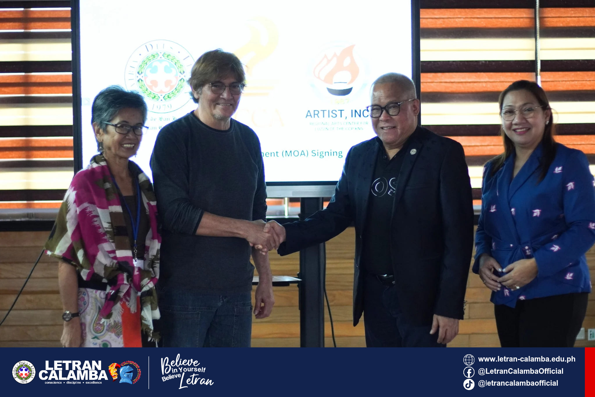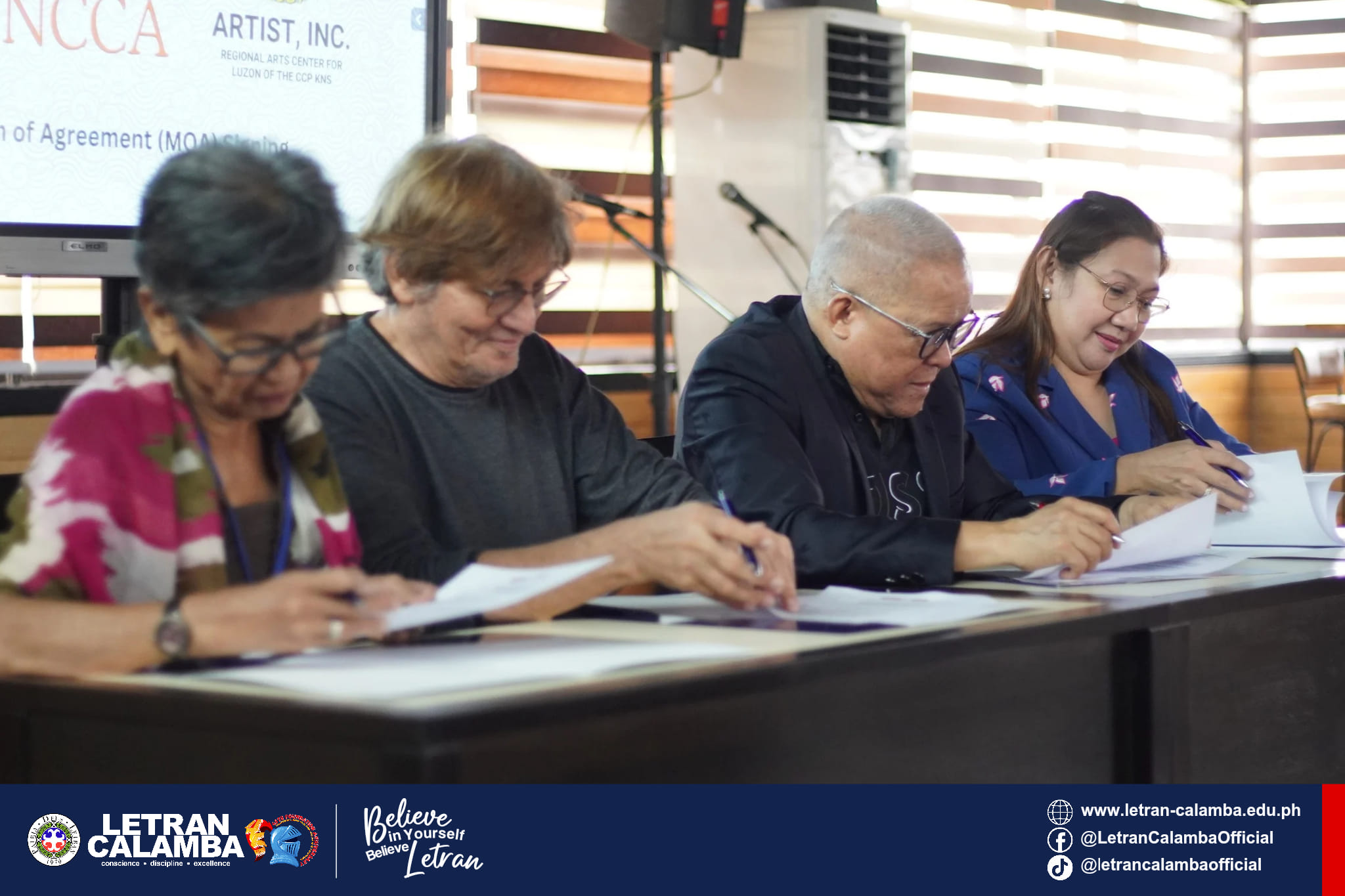 A Memorandum of Agreement (MOA) Signing happened last July 23, 2024 between Letran Calamba and National Commission for Culture and the Arts ( NCCA). The research grant is for a project entitled ’KAPISAN’ wherein it aims to craft a research-based policy framework for forming a guild for theater artists' social rights and welfare.