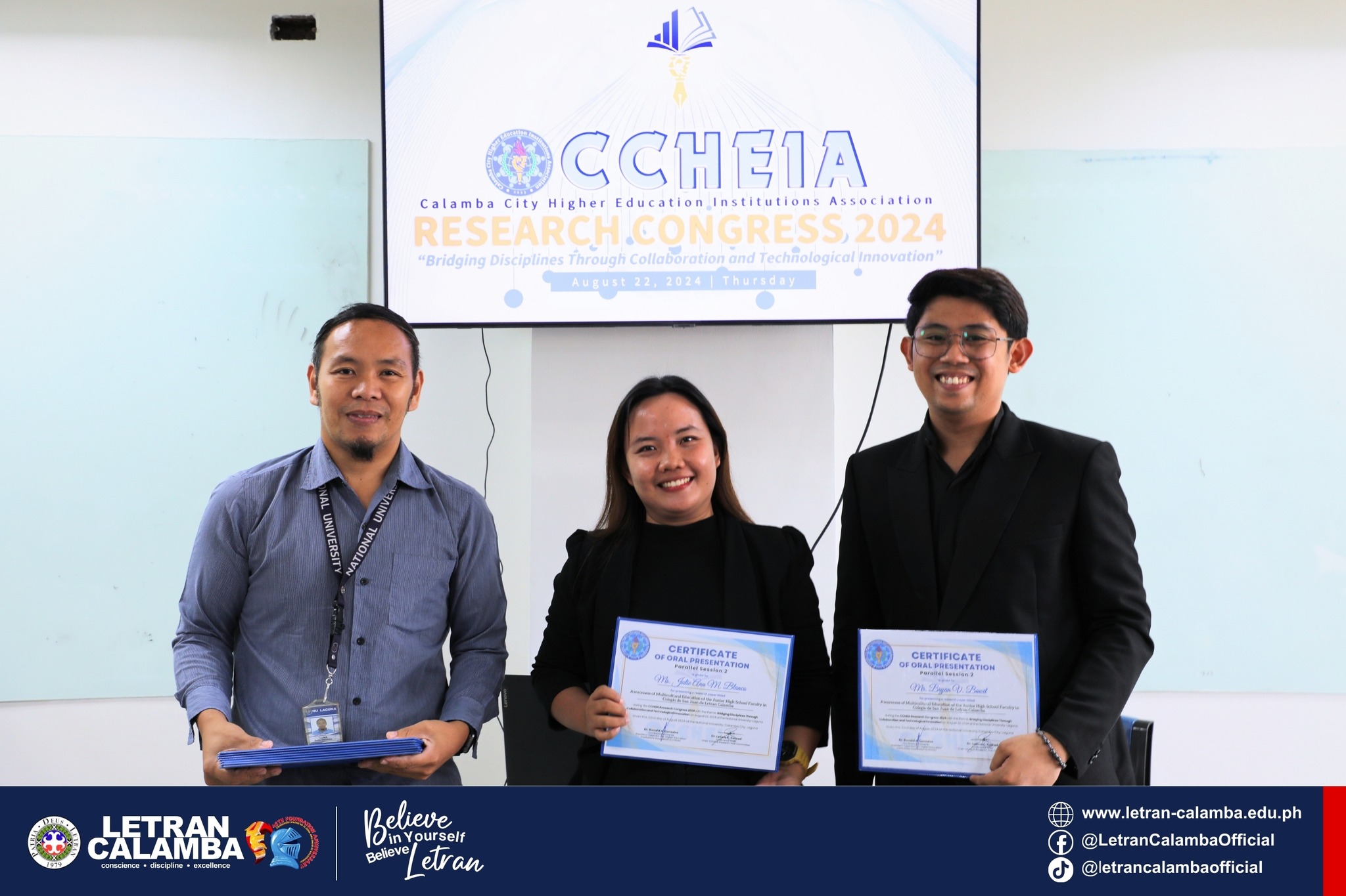 Faculty Members as well as their co-authors attended the CCHEIA Research Congress 2024 with the theme, "Bridging Disciplines Through Collaboration and Technology Innovation" last August 22, 2024 at the NU Laguna. This research congress was attended by the Higher Education Institutions of Calamba City. The Colegio's presenters showed their excellent and insightful research papers to the invited guests, co-HEIs, and students based on the discipline / category of the break-out sessions they were grouped in. Because of their dedication. some of the faculty members were recognized and awarded as: