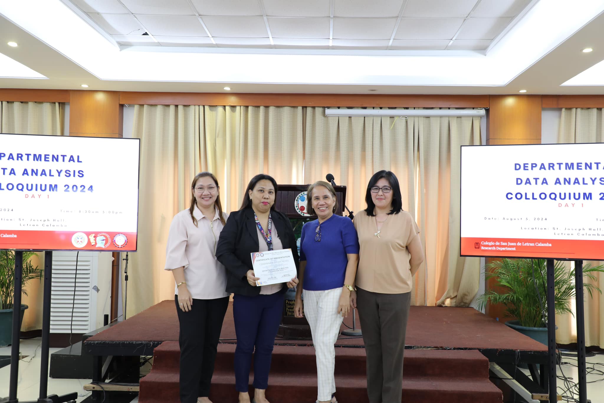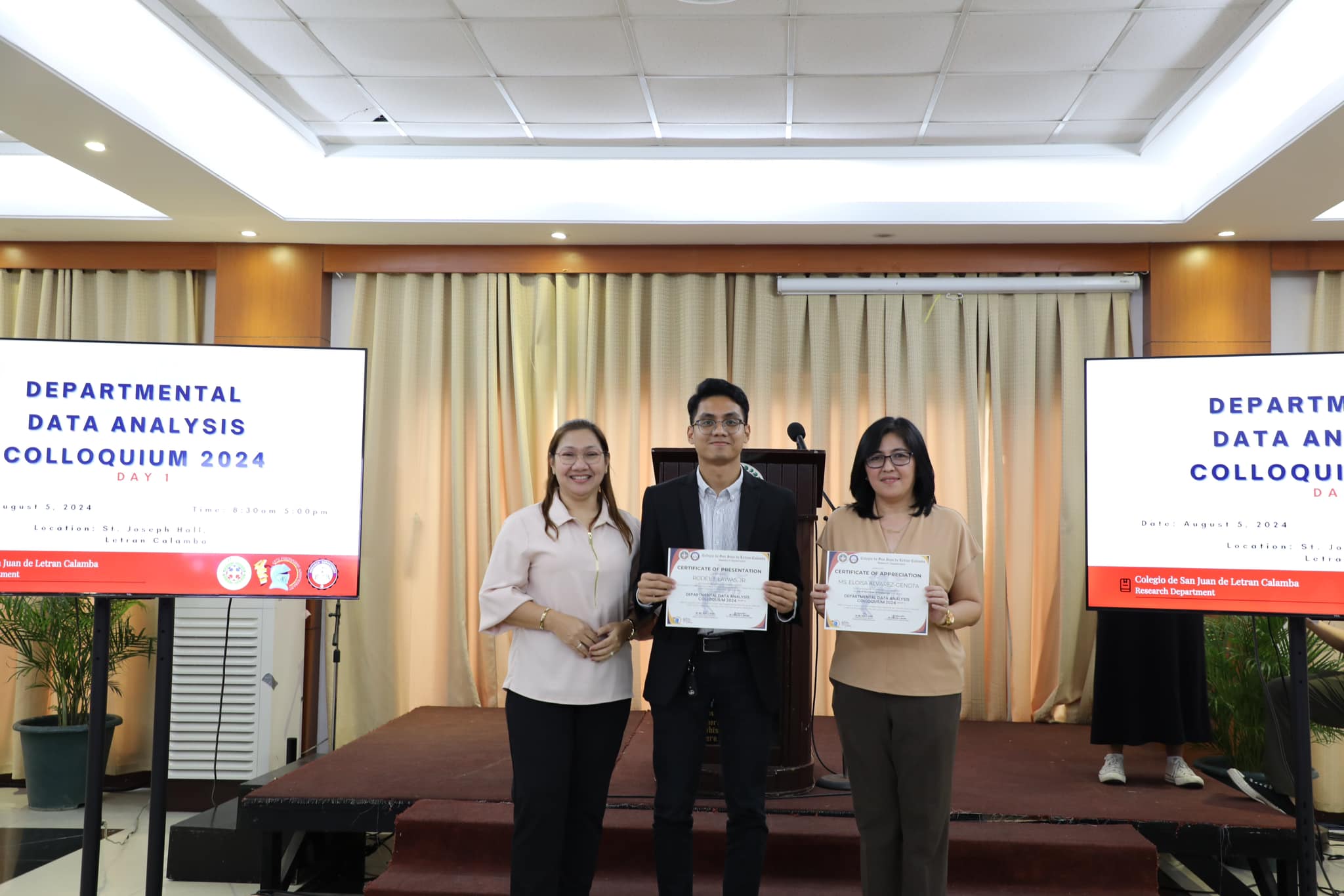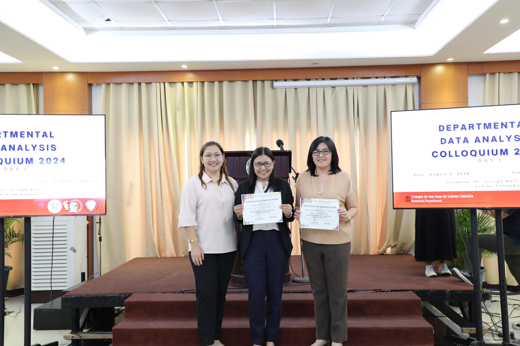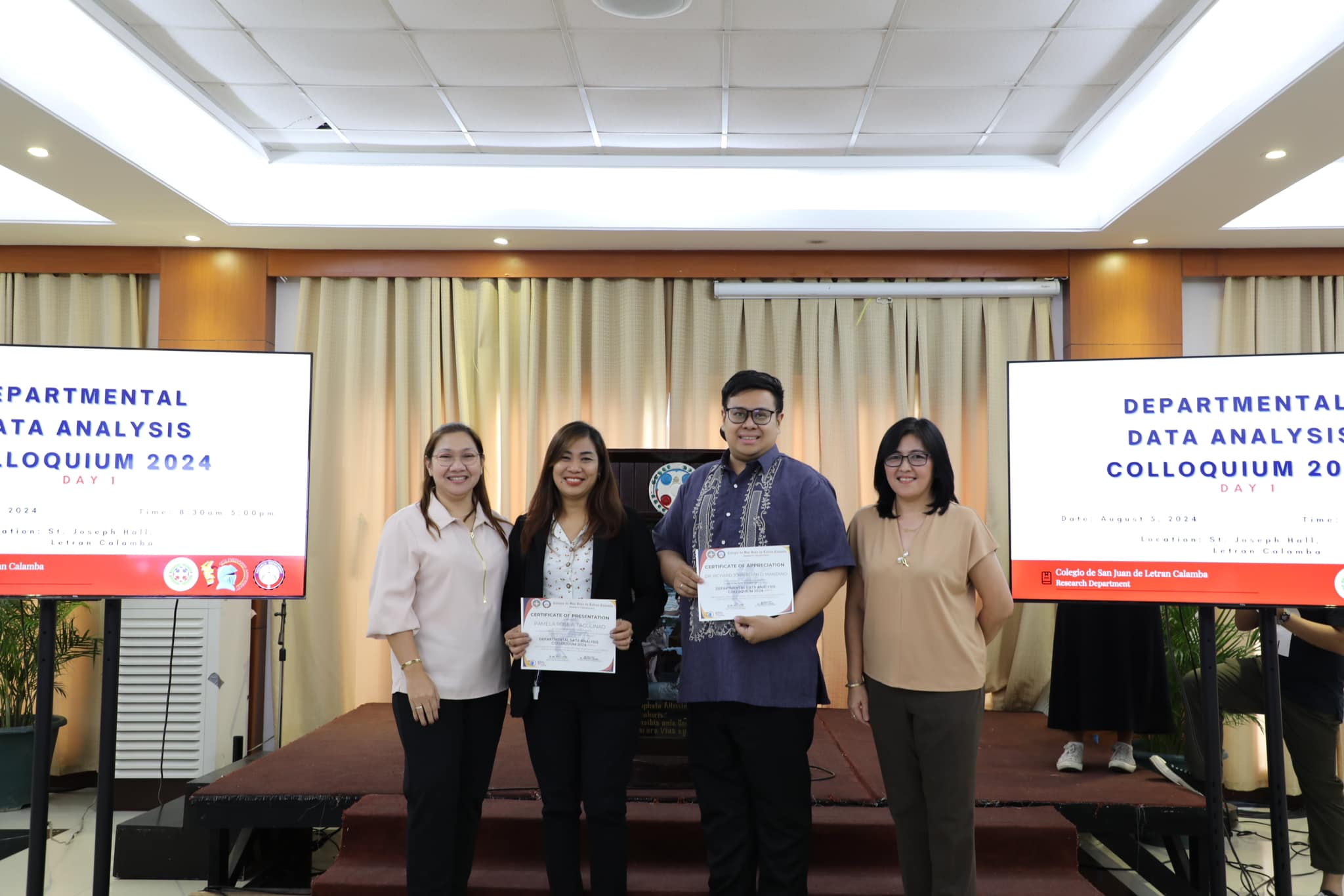 The Research Department (RD) of the Colegio de San Juan de Letran Calamba conducted the Data Analysis Colloquium 2024 (Part 1) last August 5, 2024, 8:30 am-5 pm at the St. Joseph Hall, Letran Calamba. This colloquium contributes insightful improvements based on their results and findings, discusses the latest trends, and explores innovative approaches to enhance Colegio's overall performance as an institution.