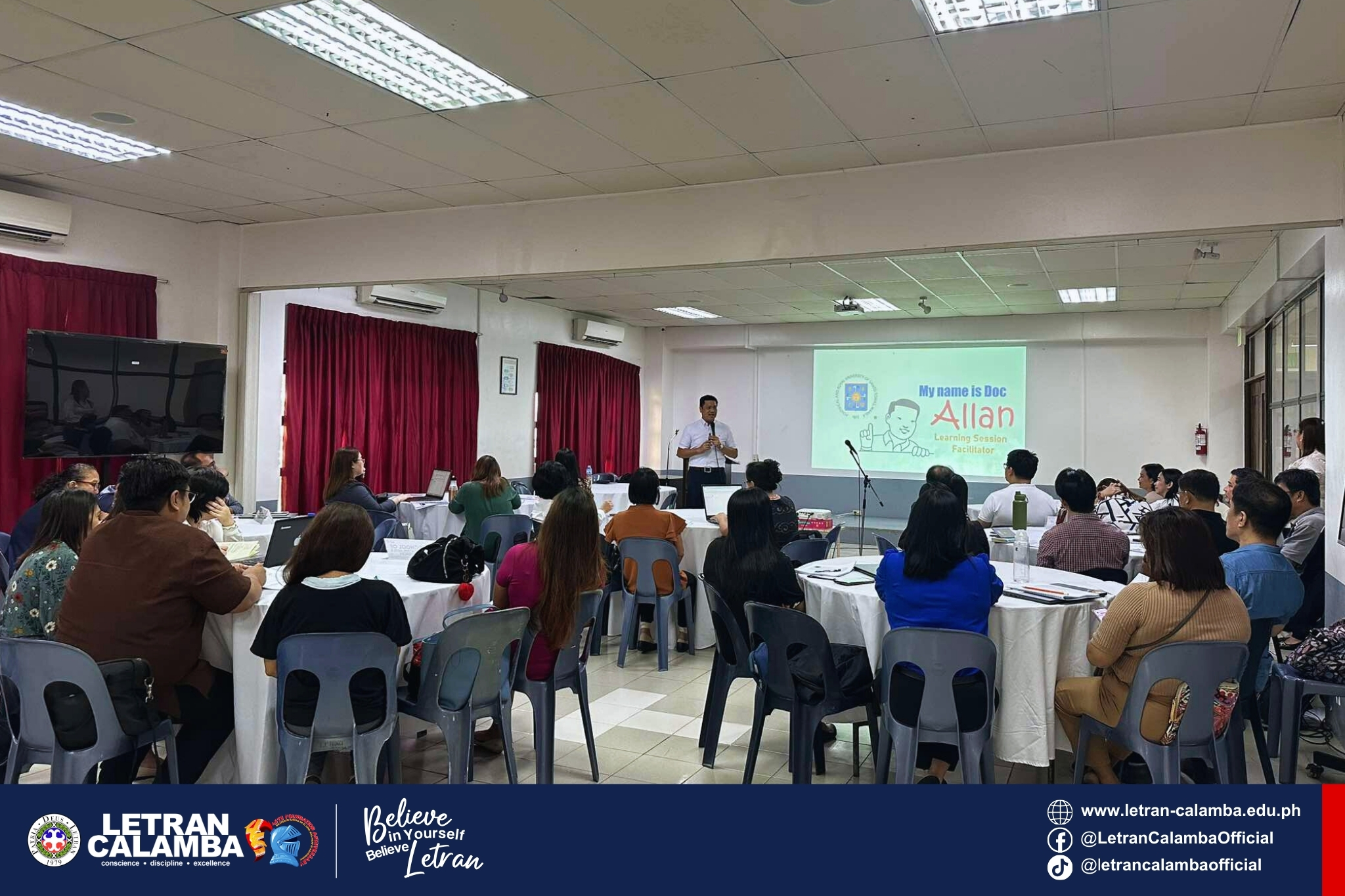 The Research Department (RD), in coordination with the Office of the VP for Academics and Research and the Human Resource Department, organized an Action Research Training on October 9, 2024. Dr. Allan de Guzman, as esteemed professor from the University of Santo Tomas and a prolific writer in gerontological and education-related studies, served as the resource speaker for this activity. The training was designed to equip the Letran Calamba faculty members and administrators with the knowledge and tools necessary to conduct meaningful action research projects.
