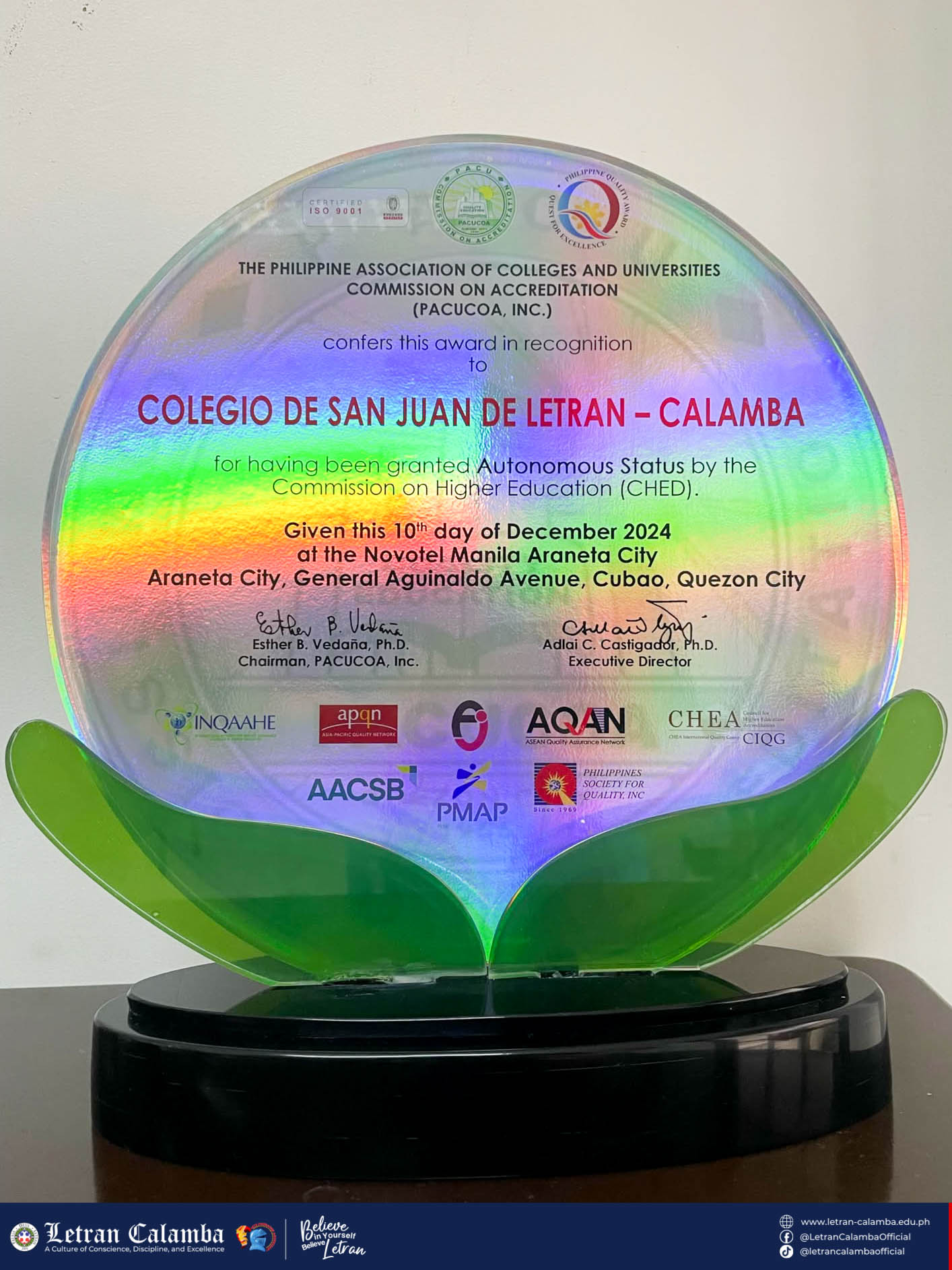 #BelieveinYourself #BelieveLetran #LetranCalamba #PACUCOAAwards #ExcellenceInEducation