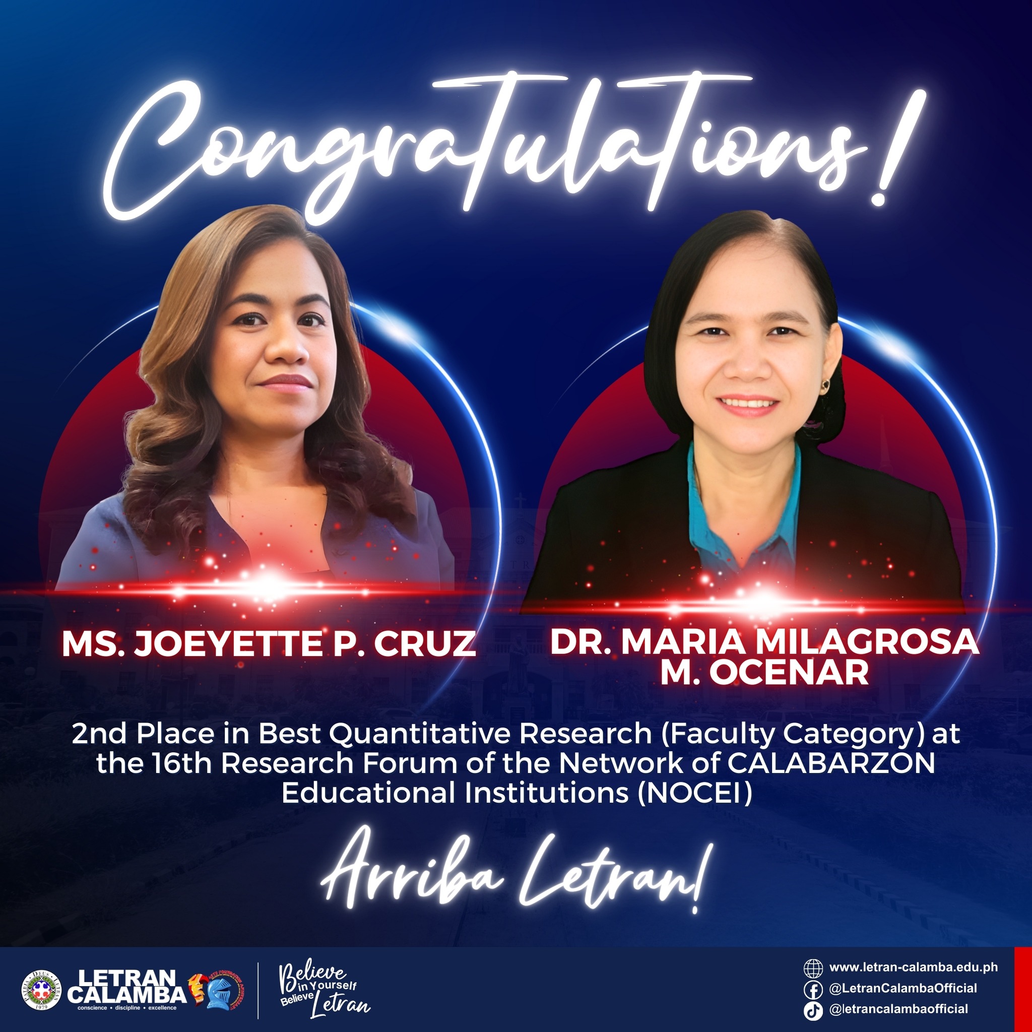 2nd Place in Best Quantitative Research (Faculty Category) at the 16th Research Forum of the Network of CALABARZON Educational Institutions (NOCEI)