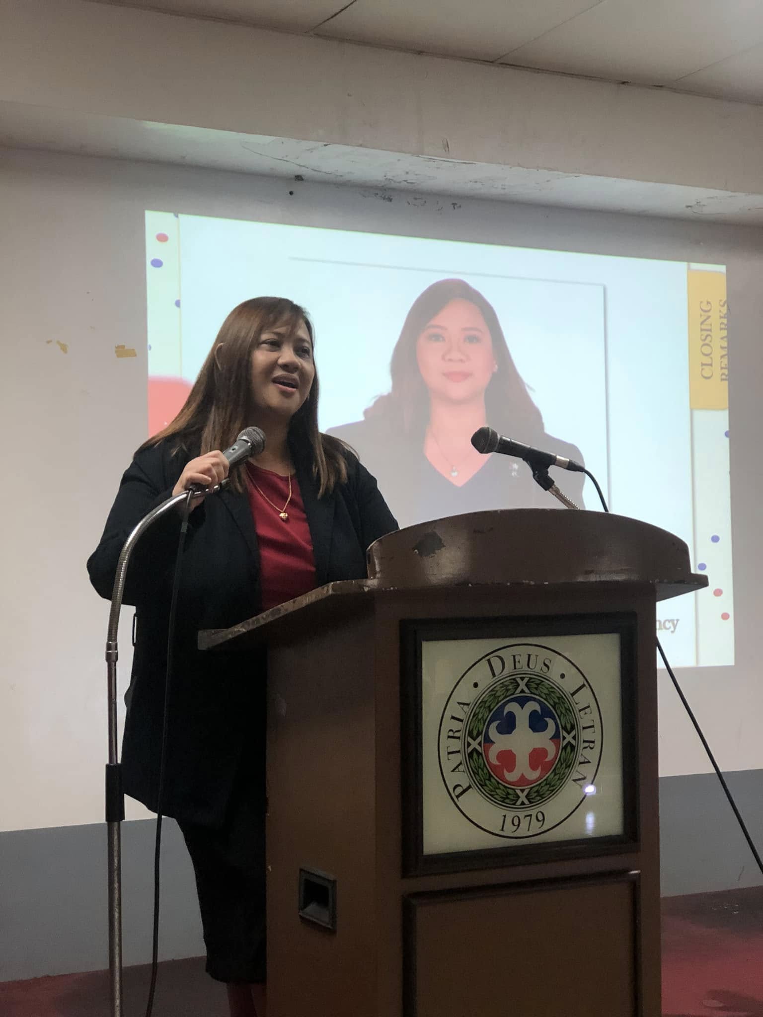 For the Closing Remarks, Ms. Priscila Gwendolyn R. Caparas, Research Moderator for School of Business, Management, and Accountancy, gave an inspirational message to all the students of who attended the colloquium.