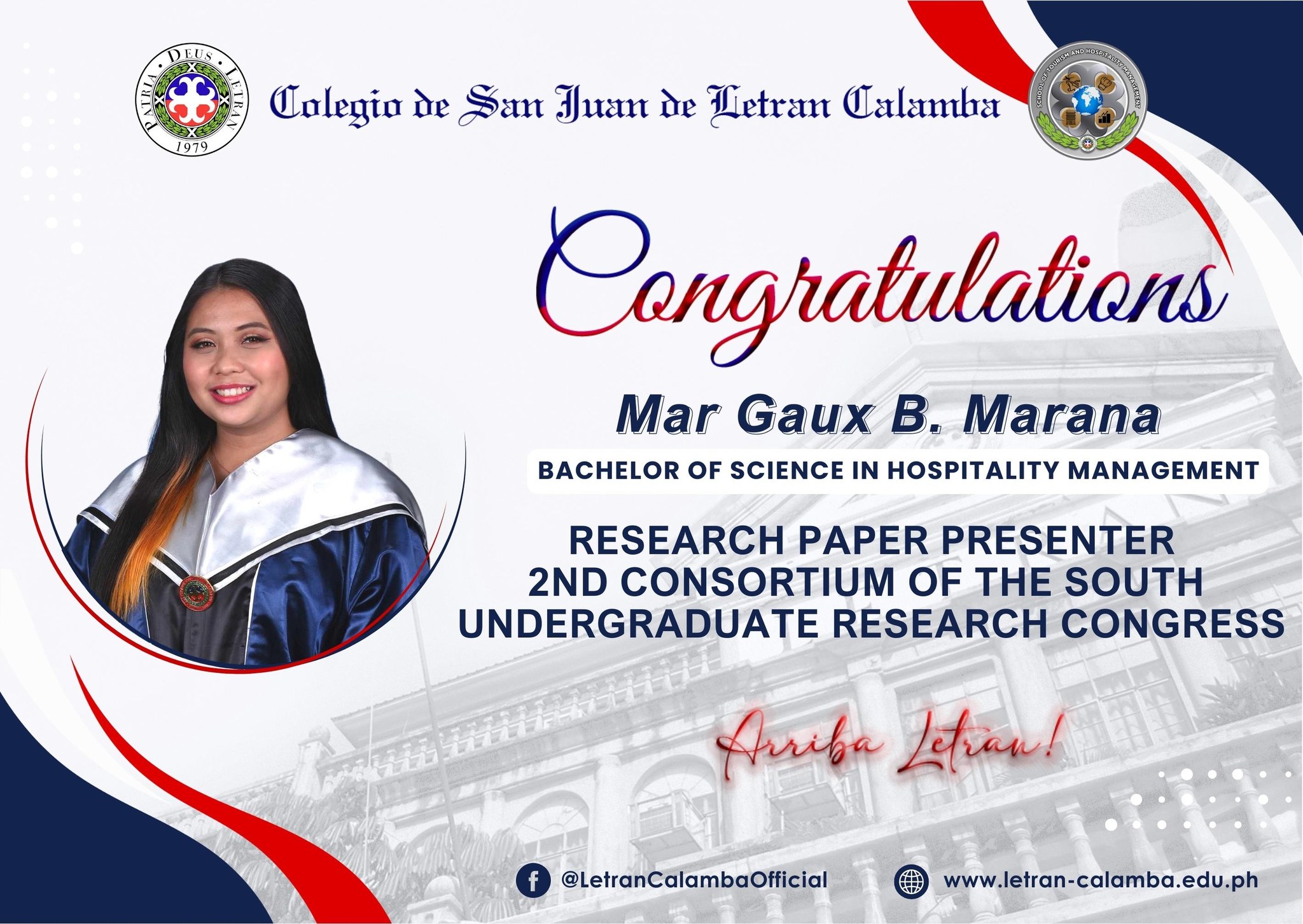Celebrating the Researchers of Tomorrow! Congratulations to the exceptional Research Paper Presenters of the 2nd Consortium of the South Undergraduate Research Congress, whose innovative work under the theme: "Reframing Research Ethics in the Academe" has left a profound impact on us all. From the initial preparations to the actual research presentation, your dedication, perseverance, and commitment to ethical research practices have truly set a remarkable example for the academic community.