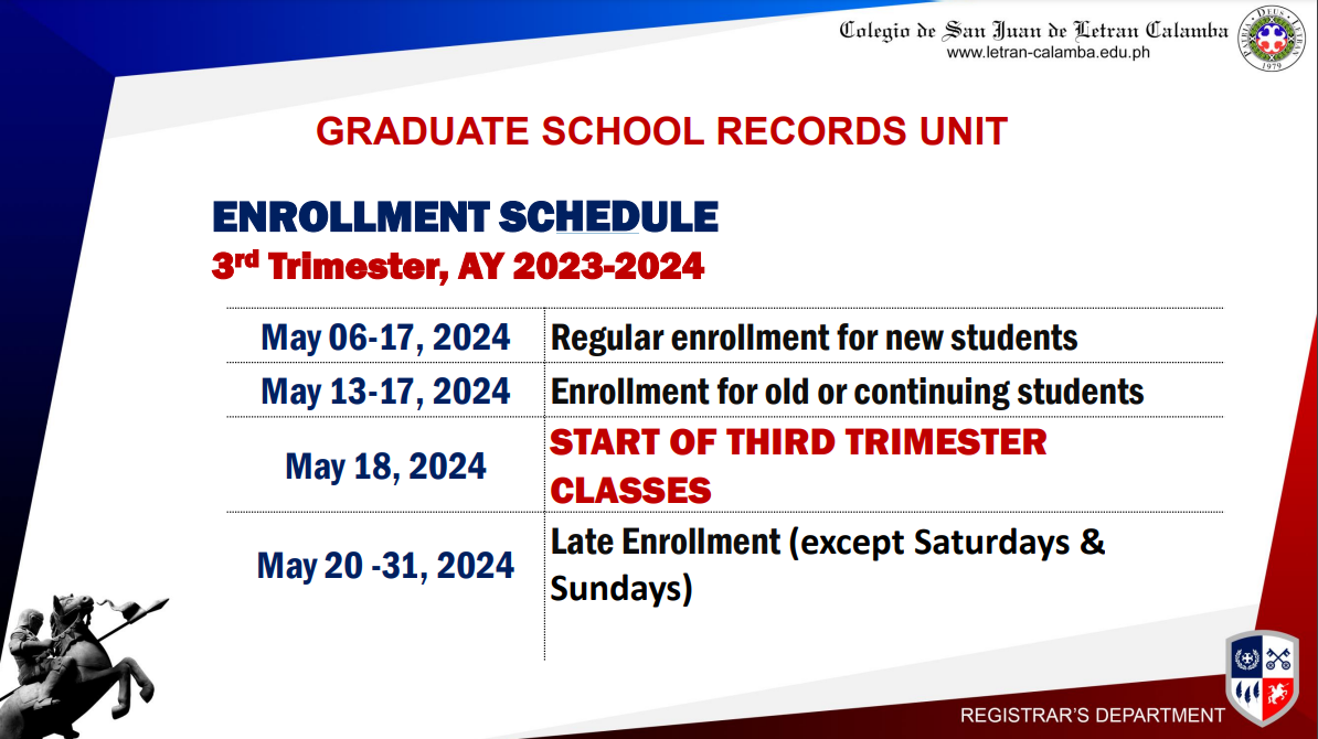 Graduate School Enrollment Schedule and Procedure for 2nd Trimester, AY 2024-2025