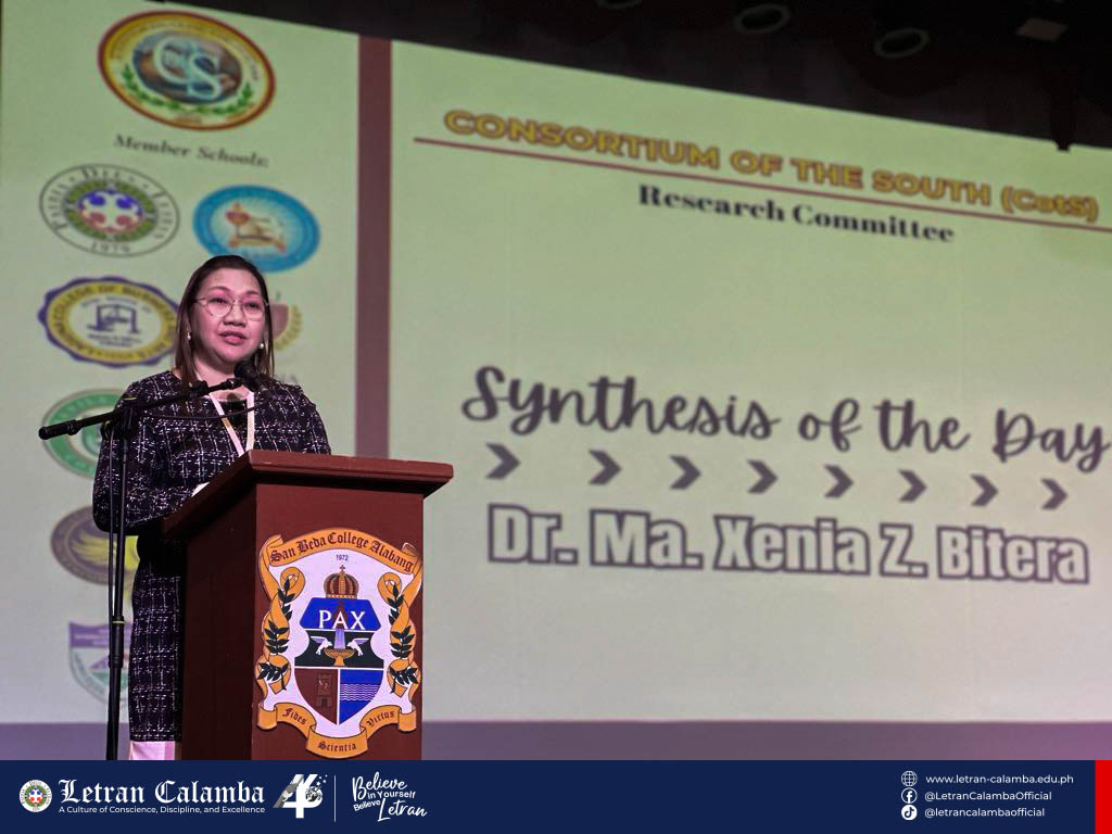 Dr. Ma. Xenia Z. Bitera, the Senior Director of the Research Department at Letran Calamba, played a pivotal role in the conference by delivering a comprehensive synthesis of the international research discussions. Her insightful analysis of the invited speakers' topics provided a cohesive overview of the conference's key themes and takeaways.