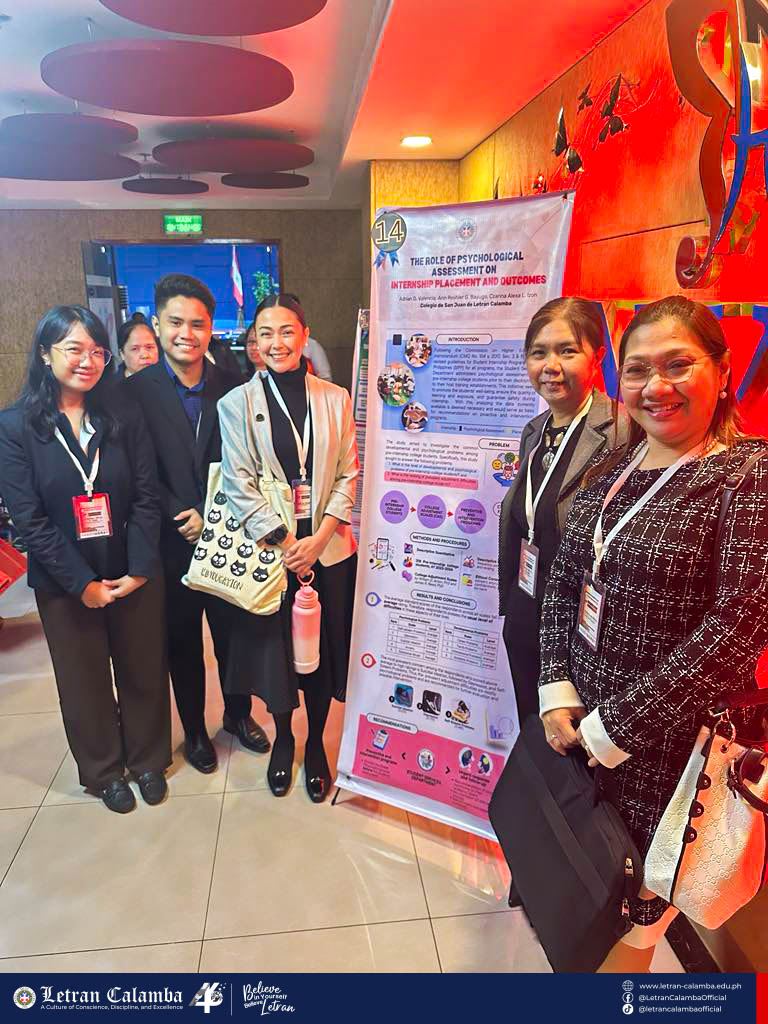 In the poster presentation segment, Ms. Ann Reshier G. Bayugo, Ms. Czarina Alexa L. Izon, and Mr. Adrian D. Valencia presented their research titled "The Role of Psychological Assessment on Internship Placement and Outcomes." This study explored the critical intersection of psychological evaluations and their impact on internship efficacy, offering valuable insights into optimizing student experiences and professional development.