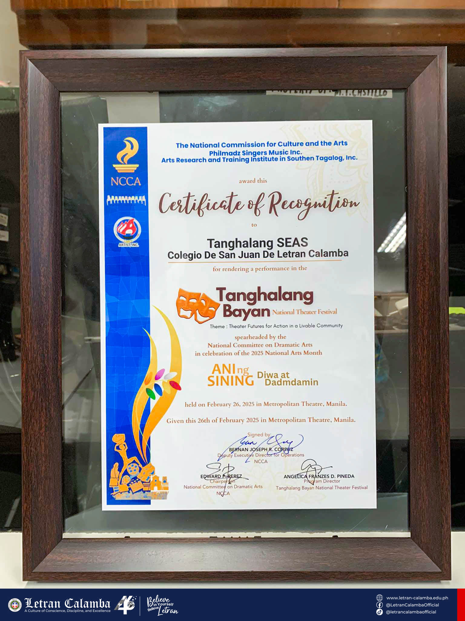 A highlight of the event was the inclusion of a theater class outcome from Letran Calamba's BACOMM students, which stood among the 24 presentations of different theater groups from all over the country. This participation underscored the institution's commitment to fostering artistic expression and practical application of theatrical skills.